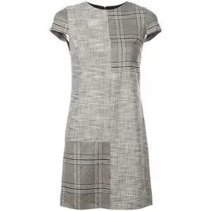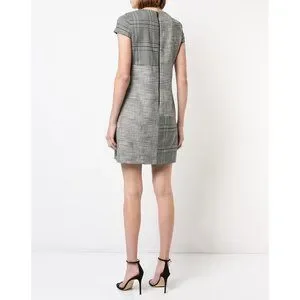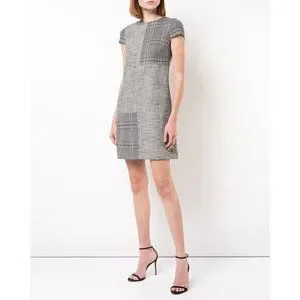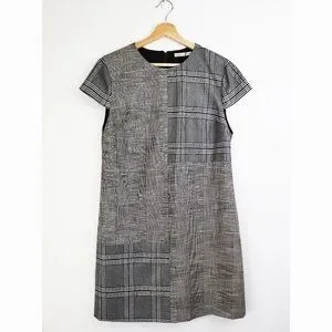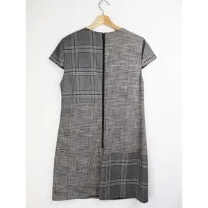 NWT Alice + Olivia Coley Plaid Dress Contrast Print Short Sleeve Black White 10