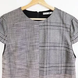 NWT Alice + Olivia Coley Plaid Dress in Black, White. Size 10.