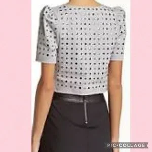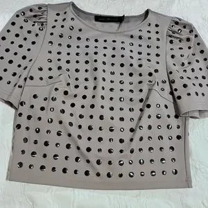 Stella & Jamie Studded Gray Puff Sleeve Crop Top Size XS X-Small NWOT