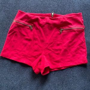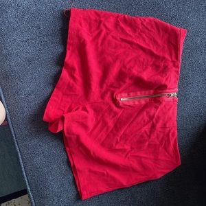 Womens size 11 red shorts with two zippers in the front and one in the back