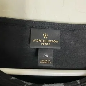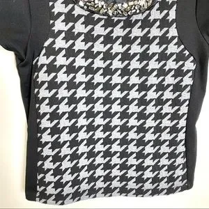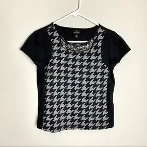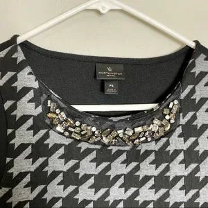 Worthington PS Petite Small Black Gray Houndstooth Jeweled Top Job Interview