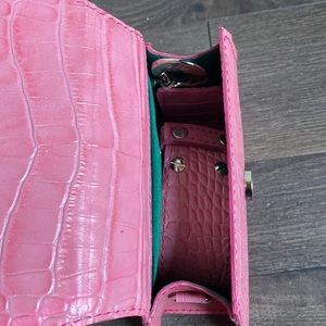Pink alligator skin bag from Nina Zarqua