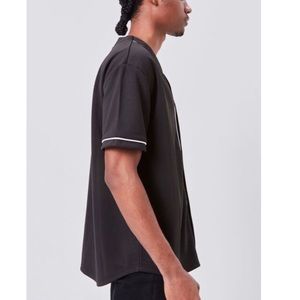 F21 MENS BLACK BASEBALL BUTTON SHIRT