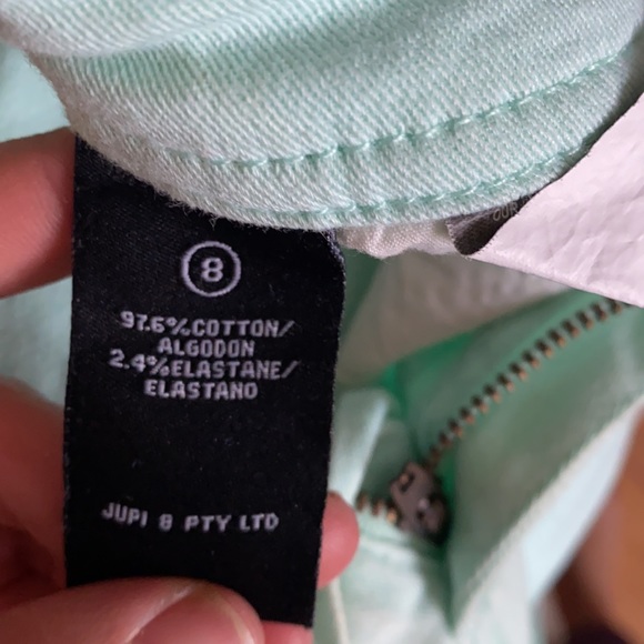 Kardashian Kollection Mint Green Skinny Stretch Jeans size 8 2 back and front pockets and zip and button fly 25” inseam