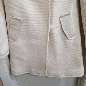 RUDSAK Ivory Designer Wool Leather Button Up Long Trench Coat Size XS