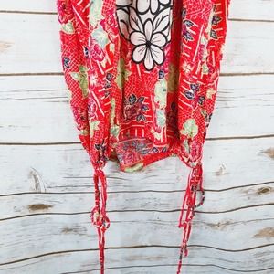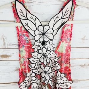 Free People Top Size S Floral Racerback Sleeveless Scoop Side Ties Coral Pink