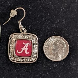 Show your Crimson Tide pride with these beautiful earrings; fish hook style with back; sparkling rhinestones surround crimson square with the Bama flying A; MAKE ME AN OFFER on these pretty earrings! β€οΈ