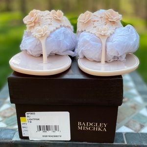 Delicate blossoms top the floral-textured straps of a glossy jelly flip-flop that exudes warm-weather appeal.