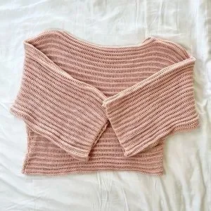 Gorgeous cropped knitted sweater. Wear if off the shoulder or as boatneck style. Wide 3/4 sleeves.