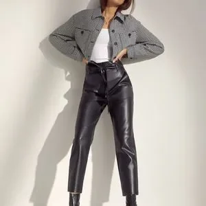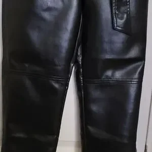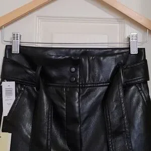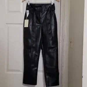 Faux leather pants in black color, size 0, tie front new with tags.