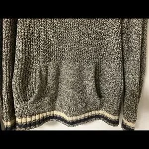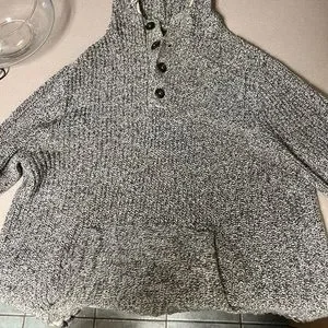 It’s blue, gray, and off white- kangaroo pouch, hoodie and buttons. Say L definitely at least a XL or XXL
