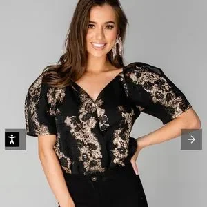 A #babecrew favorite for this holiday season! The Felicity features puff sleeves, a v neckline, back strap, and snap closure on the bottom! Pair with your best denim jeans and black booties!