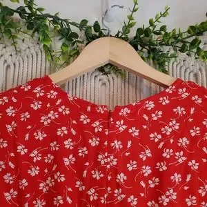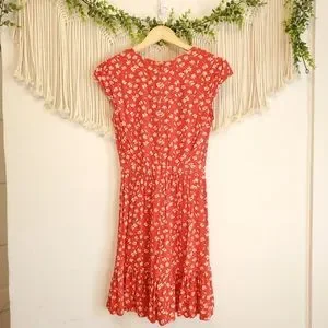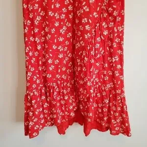 J.CREW Red Dainty Floral Faux Wrap Short Sleeve V Neck Ruffle Mini Dress sz 00