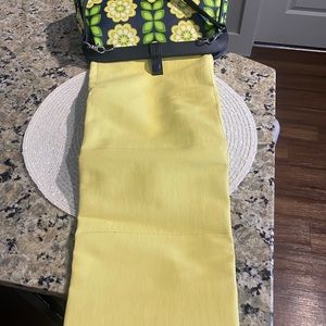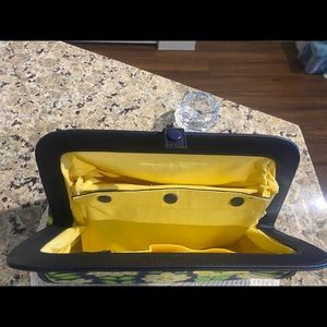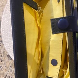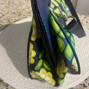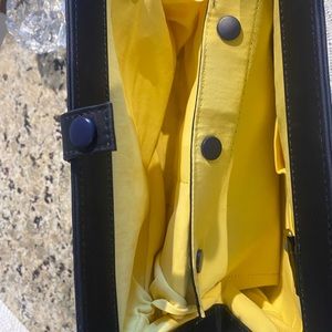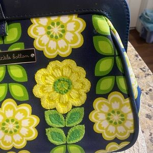 Fun yellow flower 🌼 with green stems on navy background. Snap top. Diaper pad with vinyl in one side and snaps out. Room inside for diaper and supplies.