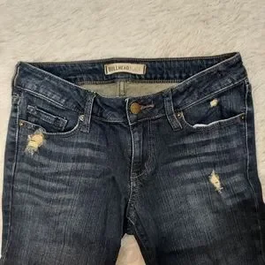 BULLHEAD BLACK Womens Juniors Bootcut Jeans Sz 3R, Stretch Dark Wash Distressed