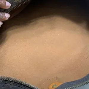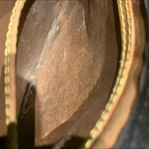A few stains inside nice patina handles- cracks on handles no odor or smells - zipper run smooth, comes with 1 key and lock - tarnish hardware - ❌zipper pull superficial crack ❌ but still intact will need attention at some point still functional can be repair by cobbler