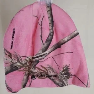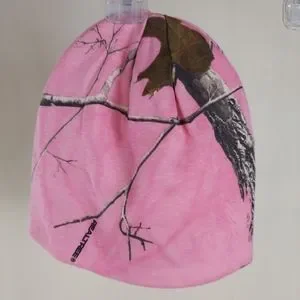 Realtree Woman's Ski Cap Pink Cammo Pattern. One size fits most. Great for bad hair days or hiking outdoors. See photos for details. Size approximately 8" length from crown and 18" around at base of cap.