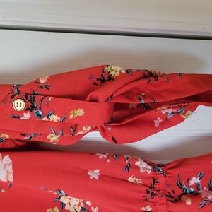 Women's Medium Quarter sleeve Dress. Front zipper. Gold Front accents. Elastic stretch waistband. Buttoned sleeves. Orange with beautiful floral detail. Worn maybe 5 times. EUC. Measurements pictured.