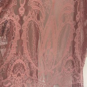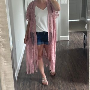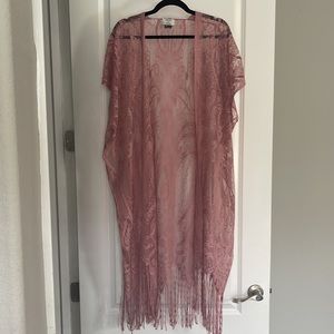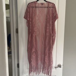 Mauve, lace, fringe kimono or cover-up