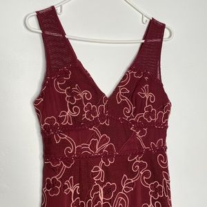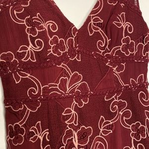 Little red dress with red/maroon and pink detailed embroidery. Beautiful patterns and fabric. Worn twice. See pictures for fabric types.