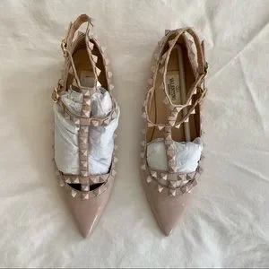 SOLD - Valentino Nude Patent Leather Rockstud Caged Ballet Flat