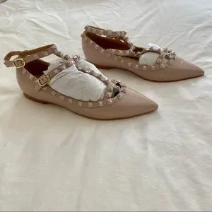 Valentino Garavani Rockstud ballerina in beige / nude patent leather. These retail for nearly $1000 brand new! Selling for quite a bit less despite the fact that they are unworn and new in box. Perfect for any occasion. Can be dressed casually for the office or out with friends, just as well as being dressed up for a night out!