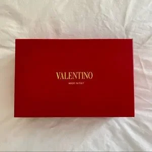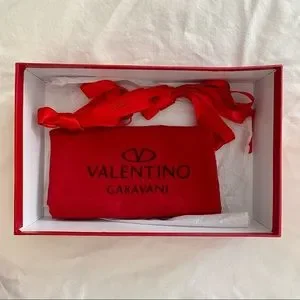 Damage: There is one very small faint bit of color transfer on the back heel which is barely noticeable. I believe that happened from some red ribbons that were stored alongside them in the box. Otherwise the shoes are new in box with zero other damage. They even still have the plastic over the Valentino logos inside the shoes.