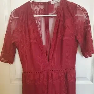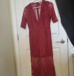 Got from a local boutique Size small (2) chiffon, lace/ crochet maxi dress, in Burgundy, has leg slit on both sides