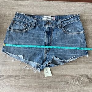 Gorgeous pair of Levi’s 559 denim cutoff shorts in a dark wash.