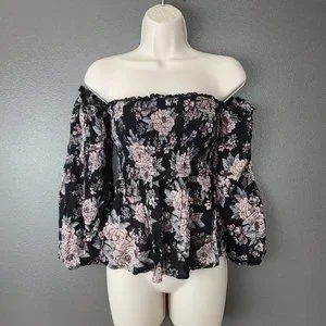 American Eagle Outfitters Black & Pink Floral Peasant Blouse