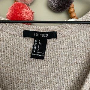 Forever 21 Cream Ribbed V Neck Midi Dress