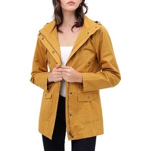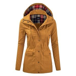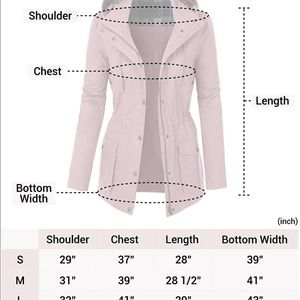 Features adjustable drawstring waist and bottom hem for better fit / Two snap button pockets and one zipper pocket to hold your belongings / Full zip up and snap button closure.