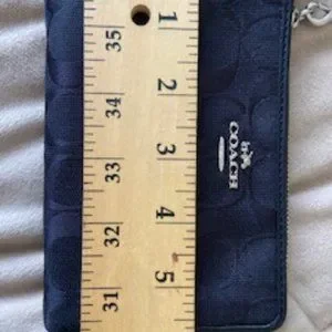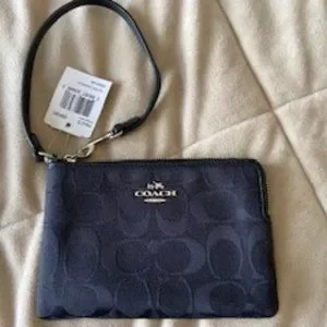 The black on black signature Coach 'C' fabric w/ a leather wristlet loop.