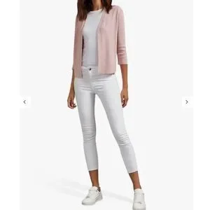 Inject a floral flourish into your wardrobe with this pretty cardigan from the popular British high-street brand Ted Baker. Open front with glamorous peony print at the back. Knit wear with silk like fabric combination, such a lovely contrast in fabrication!