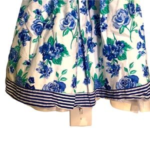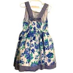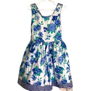 Sz6X blue flowered striped dress braided trim sleeveless Easter spring summer