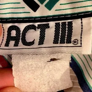 VTG 1970s / 1980s Act III Button Down Blouse. Size Unknown but Fits like a Medium. Measurements in Above Photos. Excellent Pre-Owned Condition (with Exception of Tag). Ability to Button Very Top (as shown in photos).