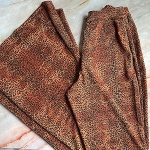 HER PONY THE LABEL Monet bandeau and flares festival set in leopard print / Excellent preloved condition Stunning bandeau in size 8. High waisted flares in size 12. Measurements available upon request. Willing to sell separately.