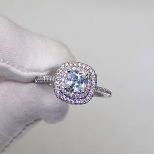 NEW 925 Sterling Silver Diamond Double Halo Ring
