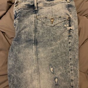 Vintage old school acid wash with center seam for a leg lengthening effect! New w/out tags- only tried in twice. Super cute- just wrong size.