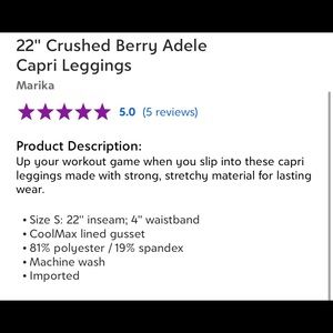 Marika 22” Crushed Berry Adele capris