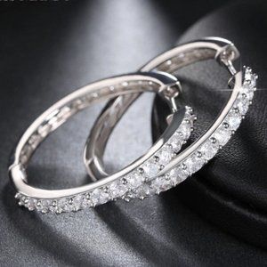 NEW 18K White Gold 1.25'' Diamond Hoop Earrings