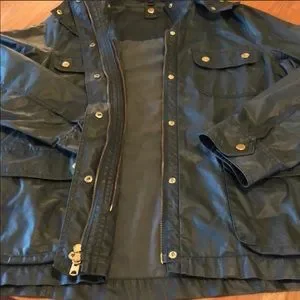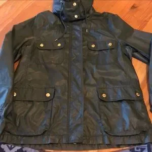 J. Crew army green rain jacket. Gold buttons. Signs of wear on back and arm. See pics. Great looking jacket.