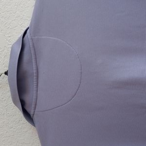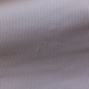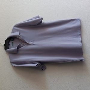 Men's ribbed collar, short sleeve polo. Shirt has signs of wear with fabric catches and pulls from pattern on front and back. Please see photos.