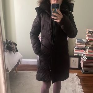 This is a barely worn down coat made by Kenneth Cole reaction in an xs size! I’m 5’1 and it’s the perfect length. Deep plum color with faux fur hood! Details on tag in pic! Duck down.