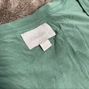 Deletta (Anthropologie / Urban Outfitters) pastel sage green ruffle sleeve tank top, size SMALL. Thin material with deep sleeves. Minor imperfection as shown in last photo; tag sewn in visible on the back due to thinness of material. Other than that, no rips, stains, or other flaws. Measurements in photos.