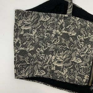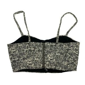 Urban Outfitters Pins & Needles Top Women Medium Black Floral Cropped Jacquard Bustier. Good condition. Exposed back zipper. See through lace trim at front chest.