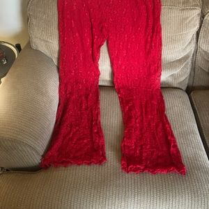 NWT RED LACE LINGERIE 2PC, SHEER, CROP TOPW/LONG BOTTOM, CUTE & SEXY IN ONE