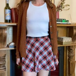 cute little mini (quite mini — would recommend for a shorter person) in red and black plaid. rear waistband is elasticated so it’s stretchy but nicely structured at the front