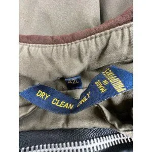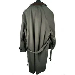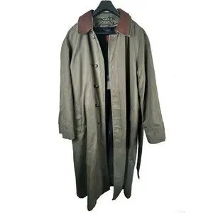 JOS. A. BANK Rainwear Mens 42L Trench Coat Olive Green Zip Liner Leather Collar
