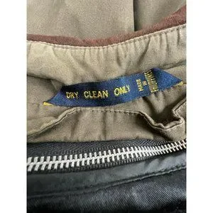 Material Shell: 100% cotton with suede leather removable collar; liner: wool blend and acetate